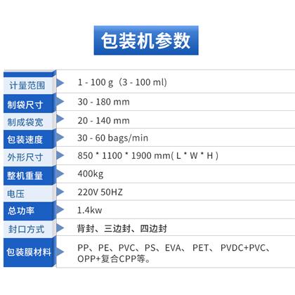 包裝速度:30 - 60 bags/min